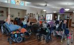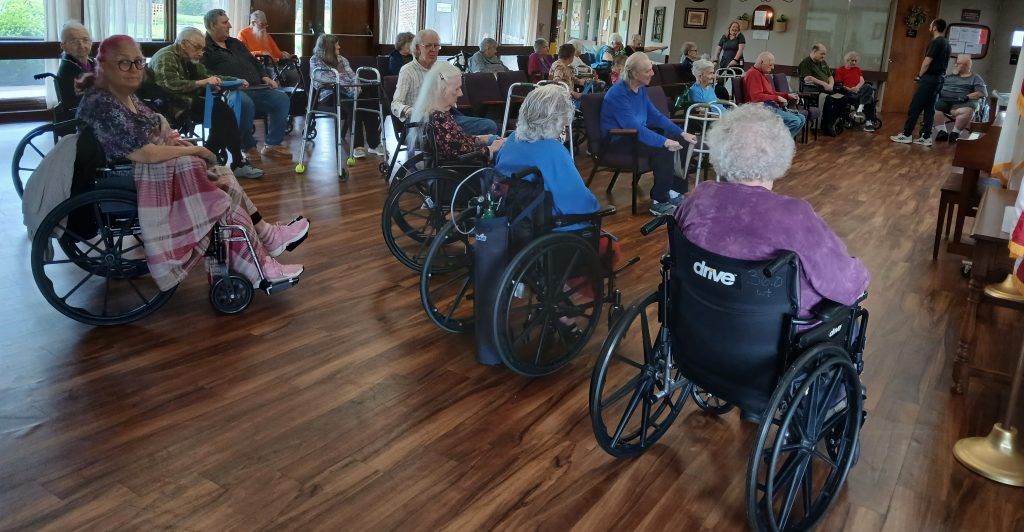 Every morning at 9 a.m. sharp we start our day off right with our Jazzercise class. Our Restorative Therapy aides lead the class and get us up and moving