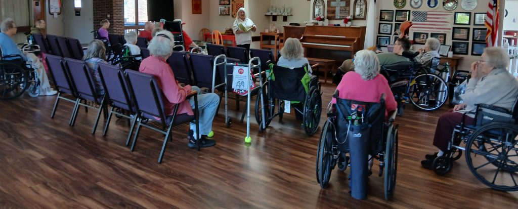 Every other Monday our residents get to enjoy a spiritual sing a long with pastor Mindy. She beautifully plays the piano and the residents sing along to their favorite spiritual songs. They always look forward to seeing her